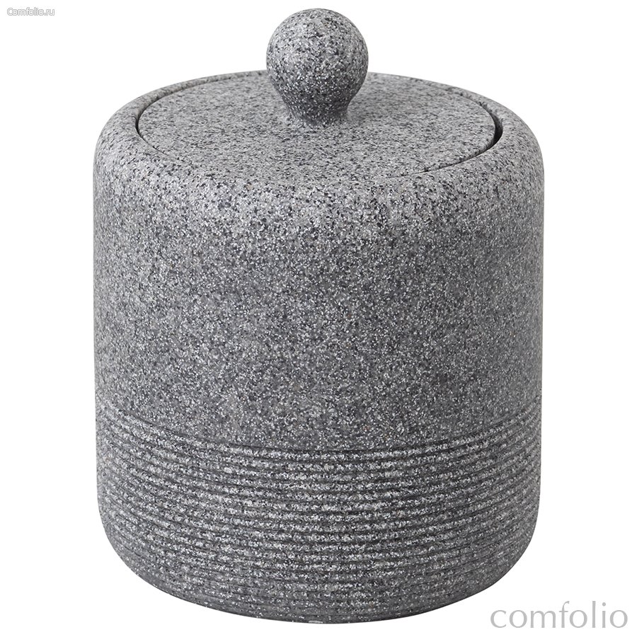 "Банка для хранения Loup имеет корпус и крышку из полирезина, стилизованного под натуральный камень графитового оттенка.