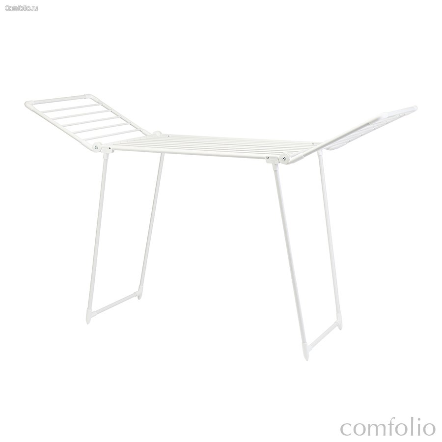 "Сушилка Hang — практичное решение для городской квартиры. Благодаря откидным боковым секциям на ней легко разместятся 1-2 комплекта постельного белья, полотенца и повседневные вещи.