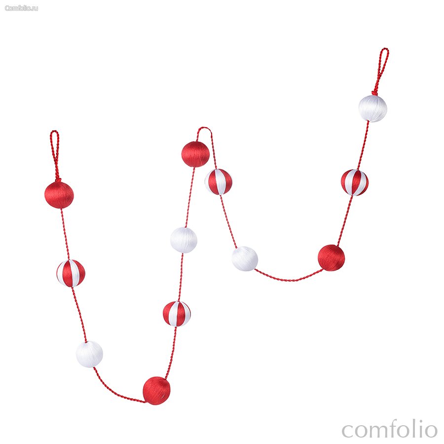 "Ожерелье из разноцветных шариков закружит вашу красавицу-елку в новогоднем хороводе ярких красок. Выдержанный в красно-белом цвете, этот декор будет эффектно контрастировать с оттенком еловых ветвей.