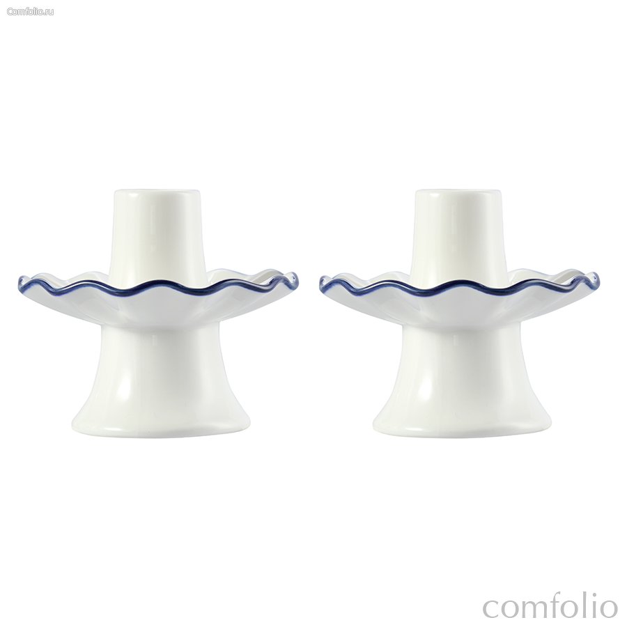 - Акцентная голубая кайма придает белоснежным подсвечникам особую элегантность.