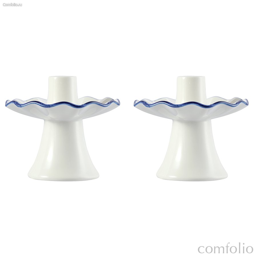 - Акцентная голубая кайма придает белоснежным подсвечникам особую элегантность.