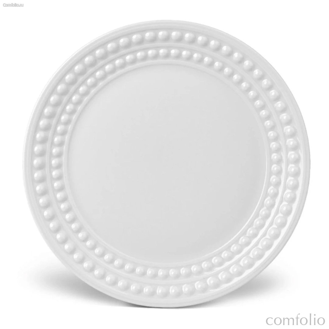 Тарелка пирожковая L’Objet Жемчуг 17 см, белый декор, фарфор - L’Objet
