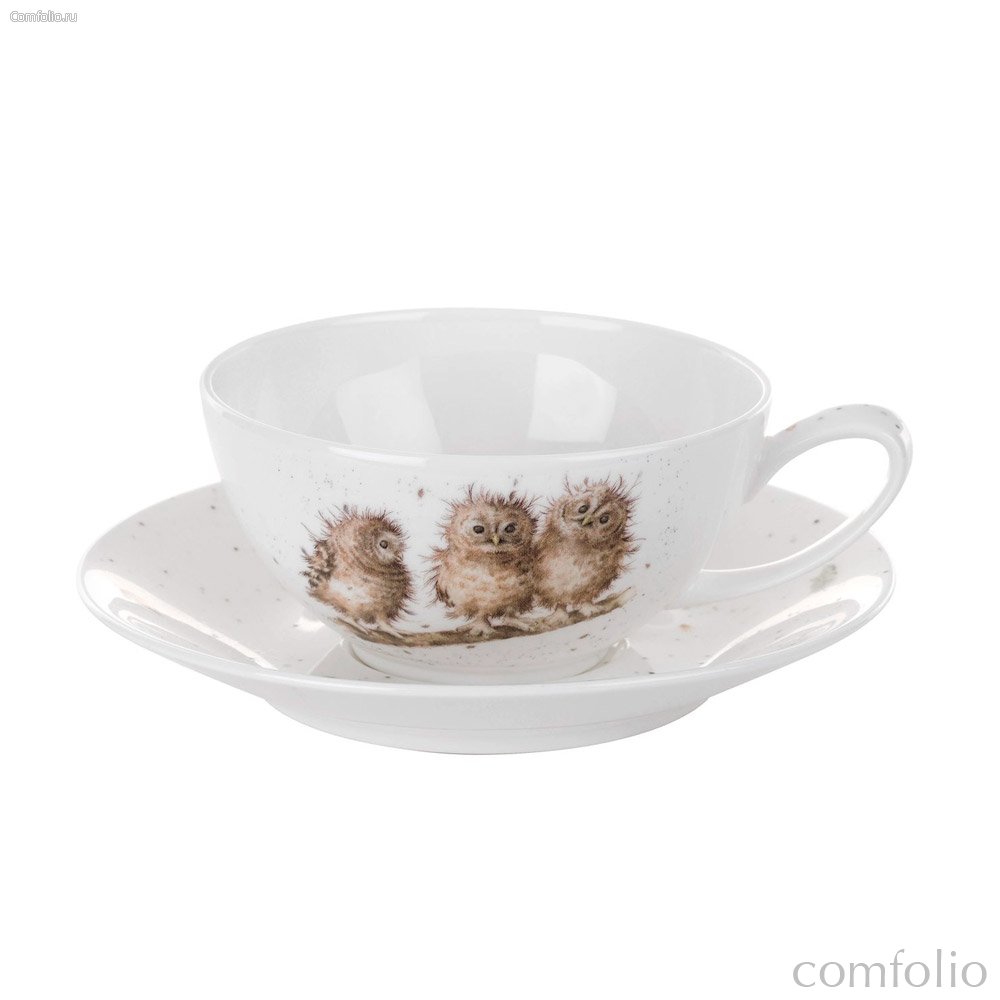 Чашка для капучино с блюдцем Royal Worcester Забавная фауна Совы 300 мл, фарфор костяной - Royal Worcester