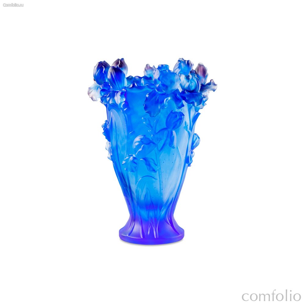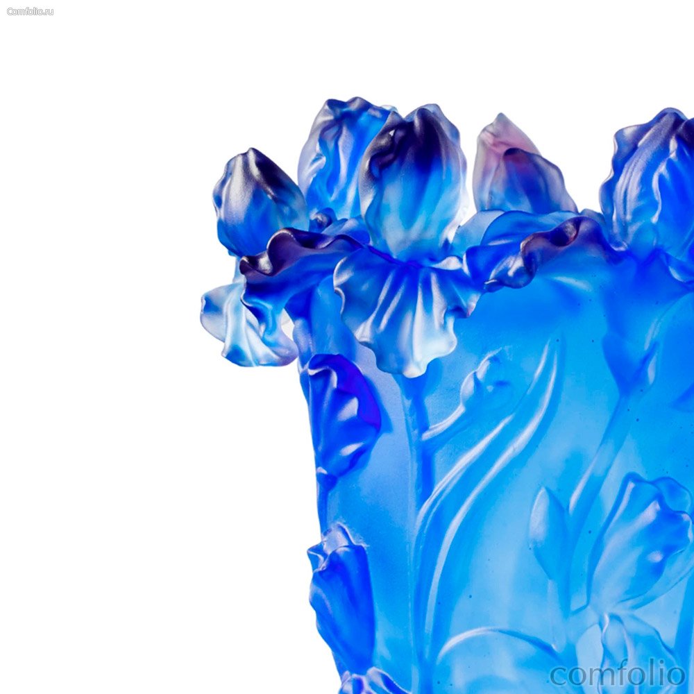 Ваза Decor de Table Pate de Verre Cristal Ирисы 32 см, хрустальное тесто, кобальтово-синяя, п/к - Decor De Table