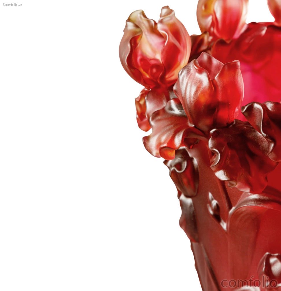 Ваза Decor De Table Pate de Verre Cristal Ирисы 32 см, хрустальное тесто, янтарно-красная, п/к