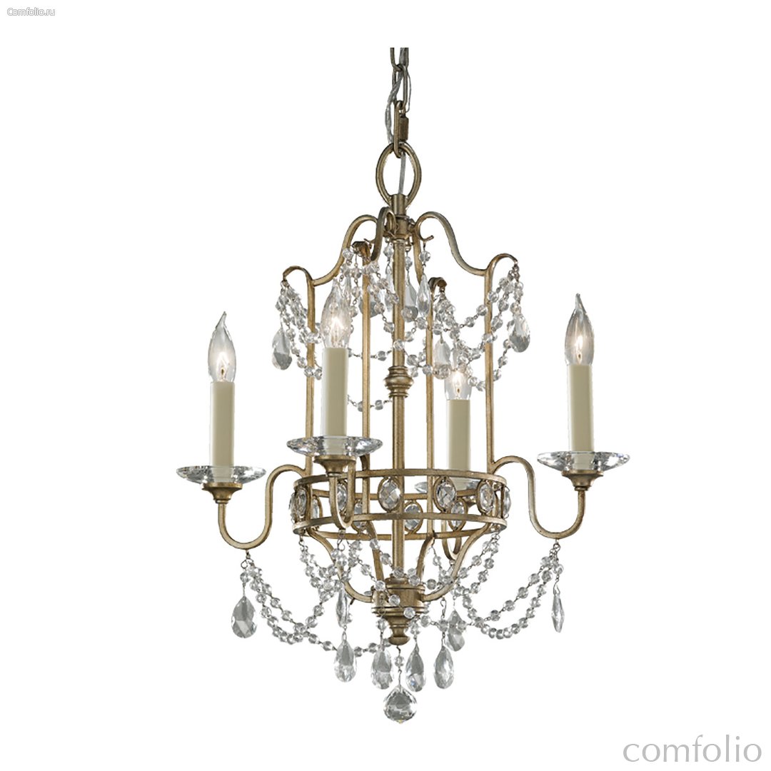 Люстра Elstead Lighting FE-GIANNA4. Создан под влиянием элегантных итальянских интерьеров 1990-х годов, светильник объединяет изящные контуры украшенные элементами из стекла, которые поставляются в отделке «сусальное серебро» (gilded silver), выполненной вручную. Идеально подойдет для освещения гостинной, кухни, спальни, столовой. Цепь 1525 мм в комплекте