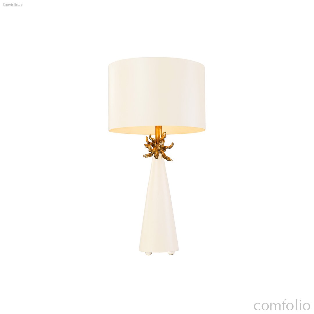 Настольная лампа Elstead Lighting FB-NEO-TL-FR-WHT. Белое основание настольной лампы украшено золотыми деталями, похожими на ветви. Конструкция украшена цилиндрическим абажуром из папье-маше светлого оттенка. Подходит для освещения гостинной, кабинета, спальни.
