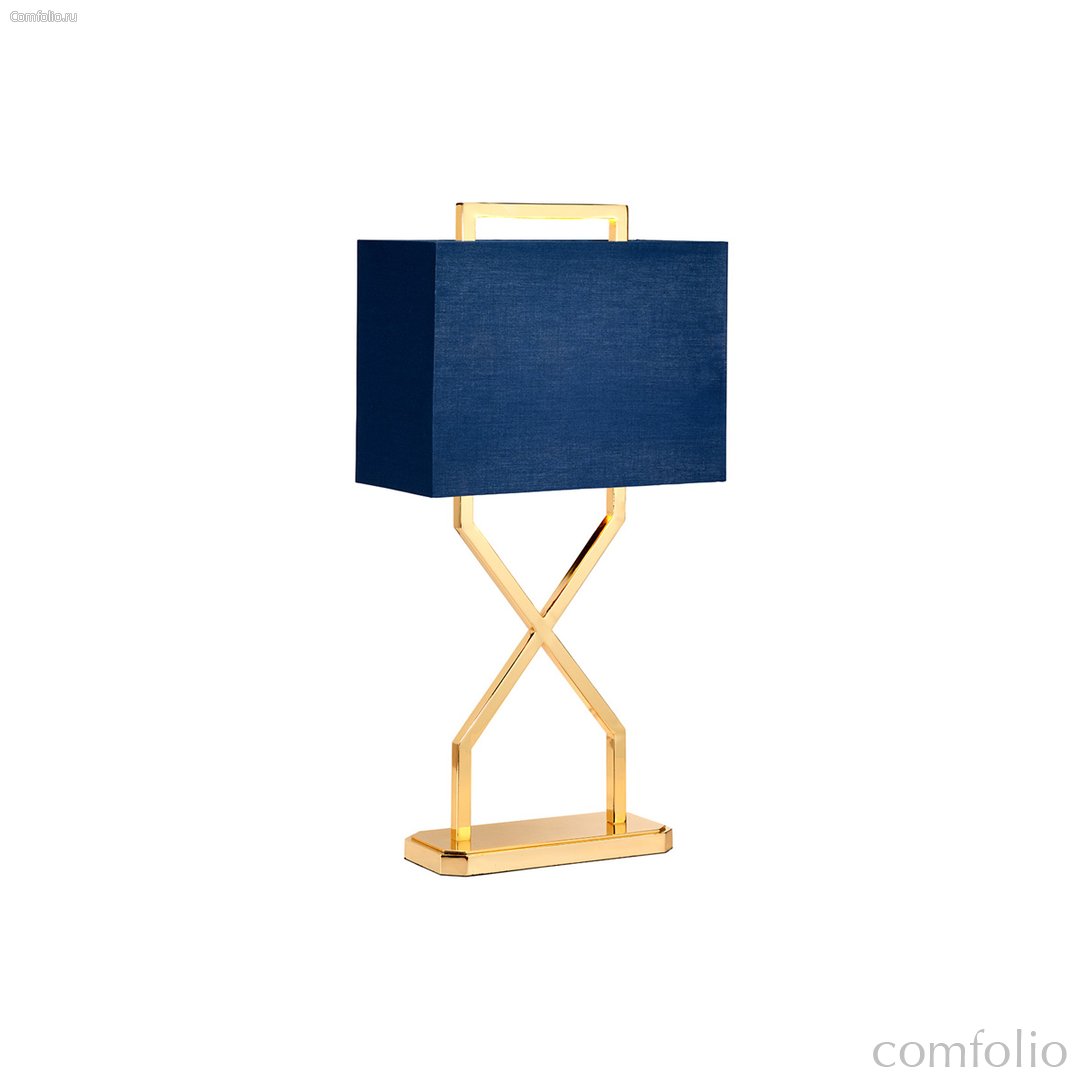 Настольная лампа Elstead Lighting CROSS-TL. Металлическое основание, выполненное в отделке «золото» украшено вытянутым абажуром прямоугольной формы глубокого синего цвета. Внутренняя сторона абажура представлена в оттенке металлический золотой. Подходит для освещения гостинной, кабинета, спальни.