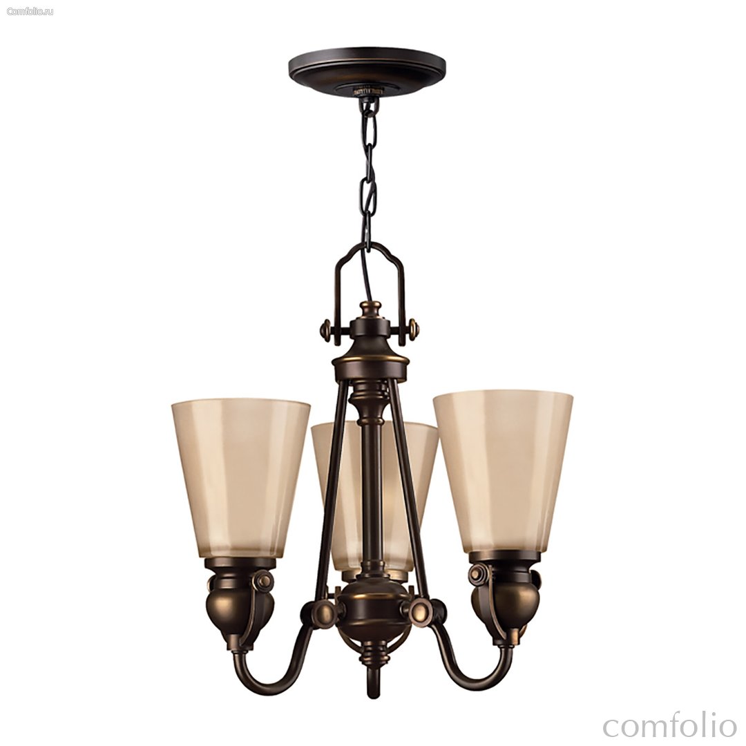 Люстра Elstead Lighting HK-MAYFLOWER3. Светильник, выполненный в традиционном дизайне с блестящей отделкой корпуса под бронзу (olde bronze). Оригинальная y-образная опора держателей и литые декоративные элементы придают светильнику своеобразный, самобытный стиль. Травленные изнутри плафоны из янтарного стекла. Подходит для освещения гостинной, кухни, спальни, столовой. Цепь 1525 мм в комплекте