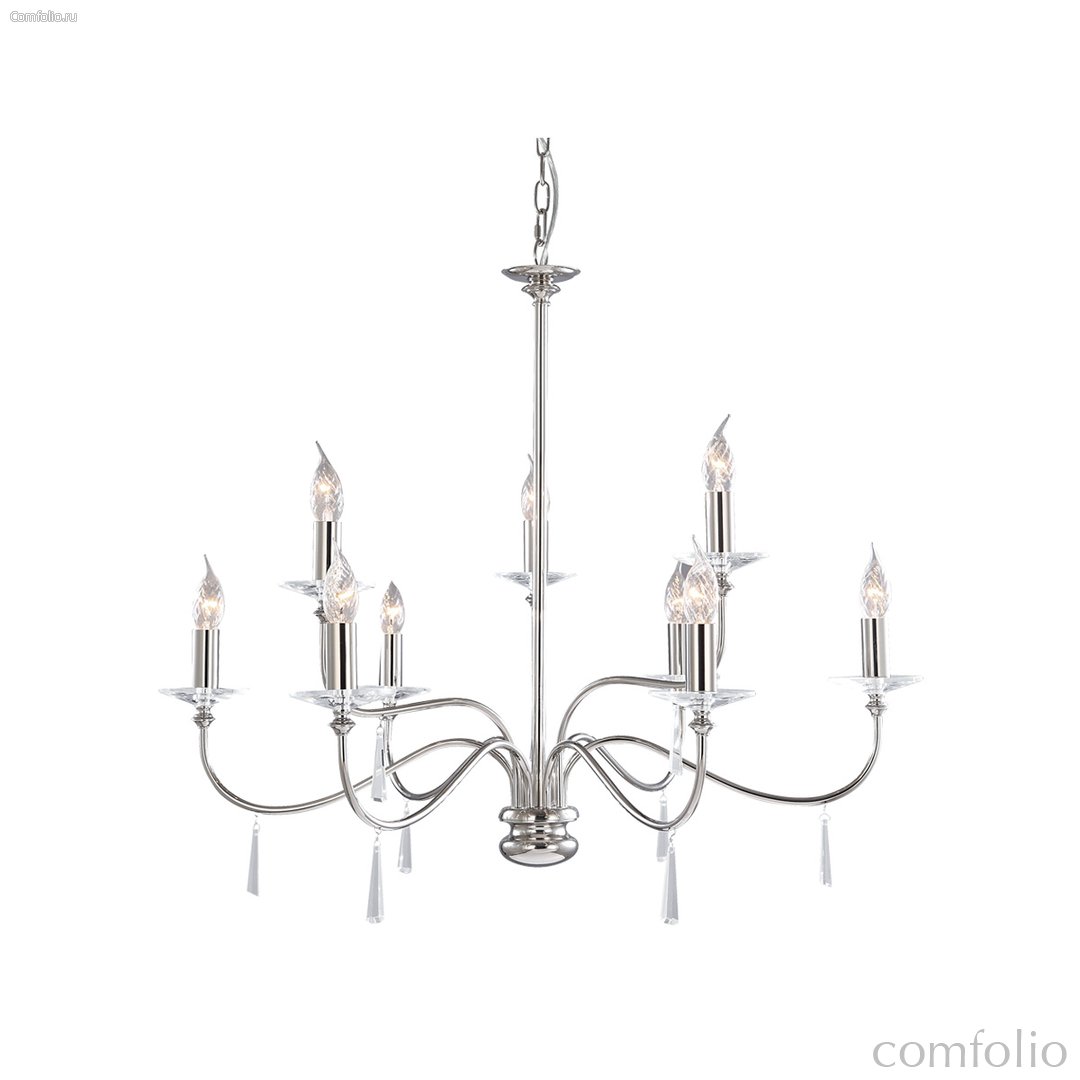 Люстра Elstead Lighting FP9-POL-NICKEL из коллекции Finsbury Park. Изготовленный вручную светильник со стеклянными подвесками и канделябрами из граненого стекла. Компоненты сделаны из литой латуни. Дополнительно можно заказать абажуры ручной работы ls162. Подходит для освещения гостинной, кухни, спальни, столовой.