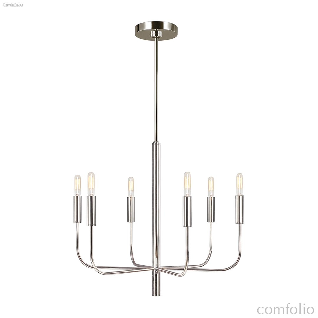 Люстра Elstead Lighting FE-BRIANNA6-PN. Для этой люстры дополнительно возможно заказать абажуры белого цвета из льна ls359 (в комплект не входят). Изящные изгибы и удлинённые трубчатые формы придают классическому минималистскому силуэту плавность и современное очарование. Основание в отделке - Полированный никель. Подходит для освещения гостинной, кухни, спальни, столовой.