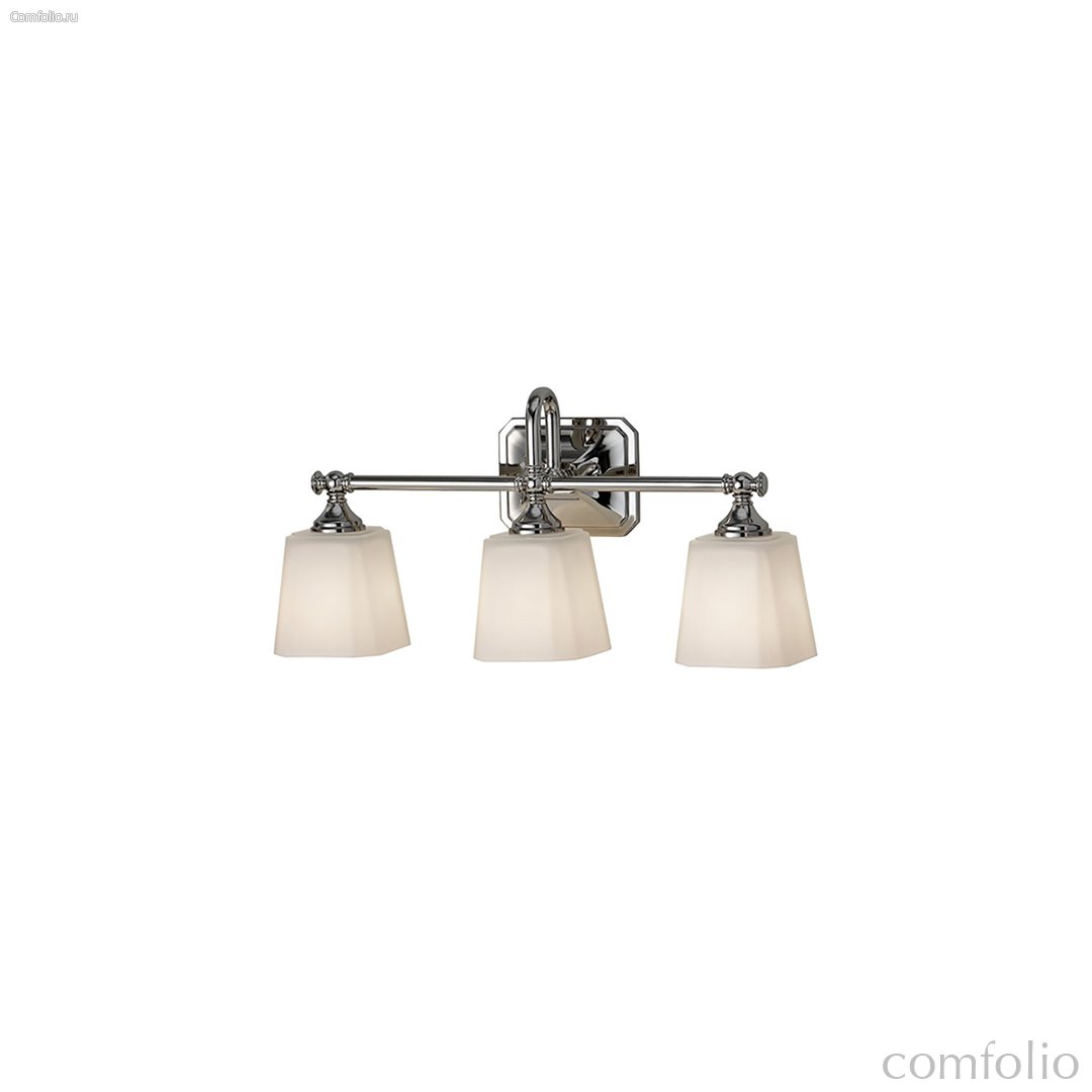 Бра Elstead Lighting FE-CONCORD3-BATH. Эстетика колониального стиля угадывается в светильнике, классические рожки, изогнутые в форме лебединой шеи, матово-белые плафоны со срезанными углами перекликаются с розеткой, где намечены такие же грани. Основание выполнено в отделке - Хром. Идеально подойдет для освещения ванной комнаты, степень защиты IP44.