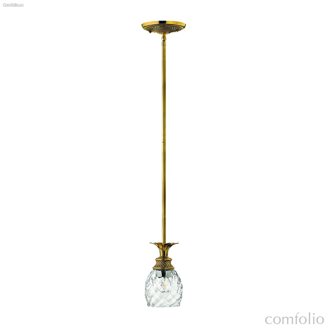 Подвесной светильник Elstead Lighting HK-PLANTATION-MP-BB. Светильник украшен необычным плафоном в форме ананаса, изготовленным из чистого оптического стекла. . Основание выполнено в отделке - Полированная латунь. Подходит для освещения гостинной, кабинета, кухни, прихожей, спальни, столовой. Стержни 2x305 мм и 1x153 мм в комплекте