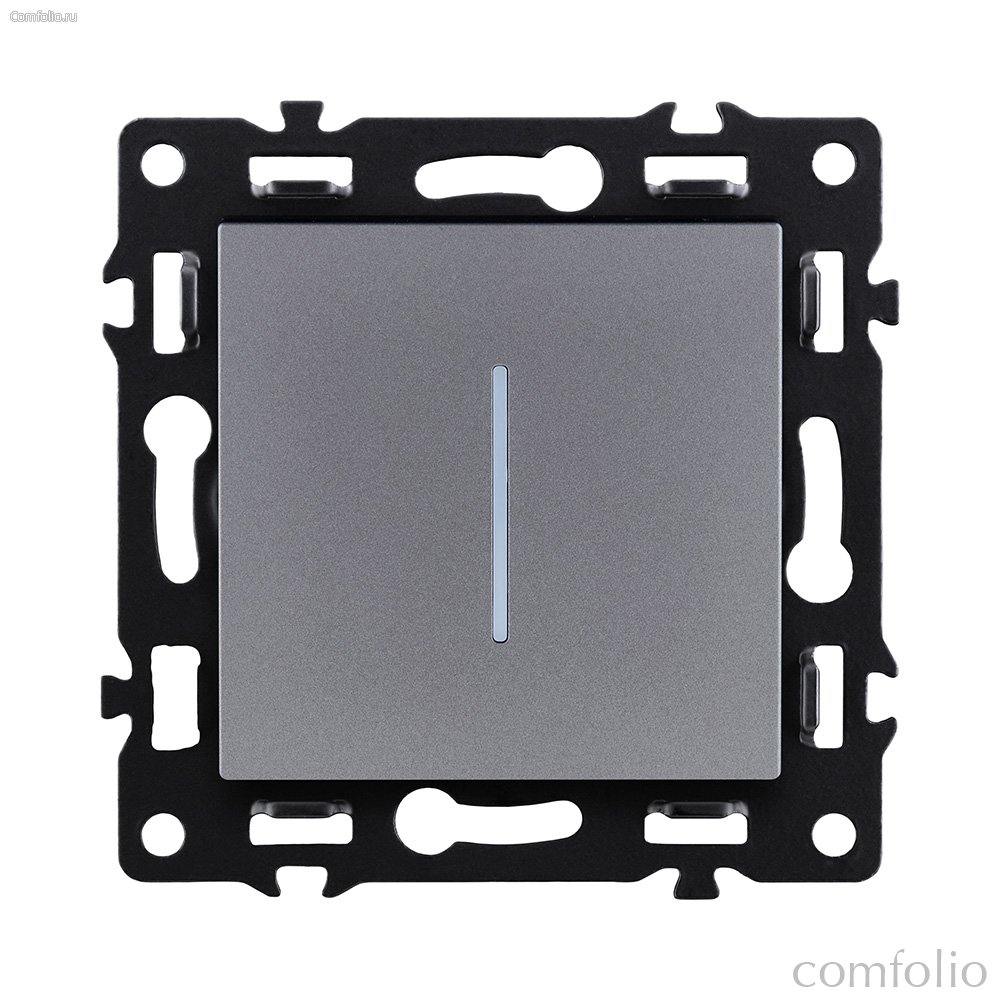 Выключатель 1-клавишный 10А/250В с LED подсветкой, серый Kollinger Asthetik AS-007GY - Kollinger