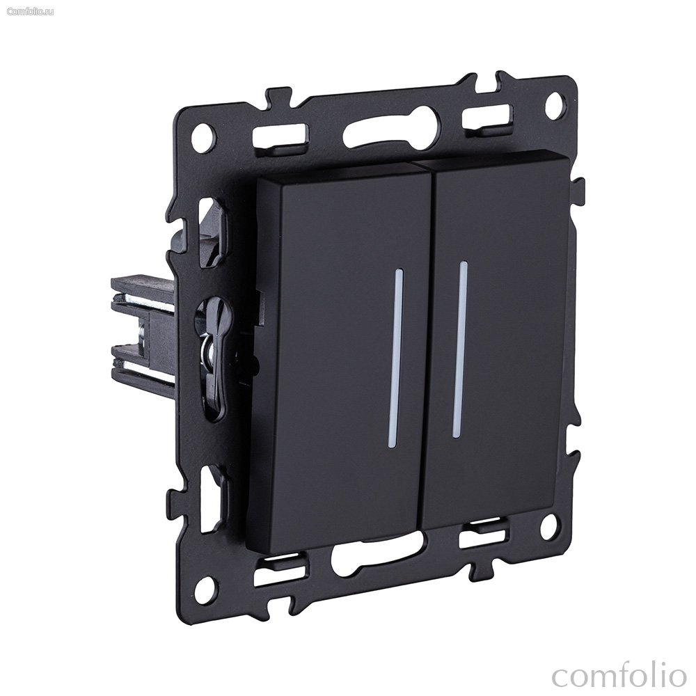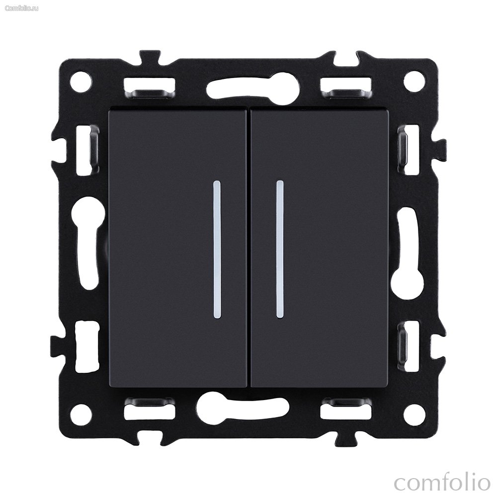 Выключатель 2-клавишный 10А/250В с LED подсветкой, черный Kollinger Asthetik AS-010BK - Kollinger