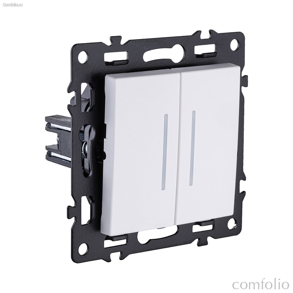 Выключатель 2-клавишный проходной 10А/250В с LED подсветкой, белый Kollinger Asthetik AS-011WH - Kollinger