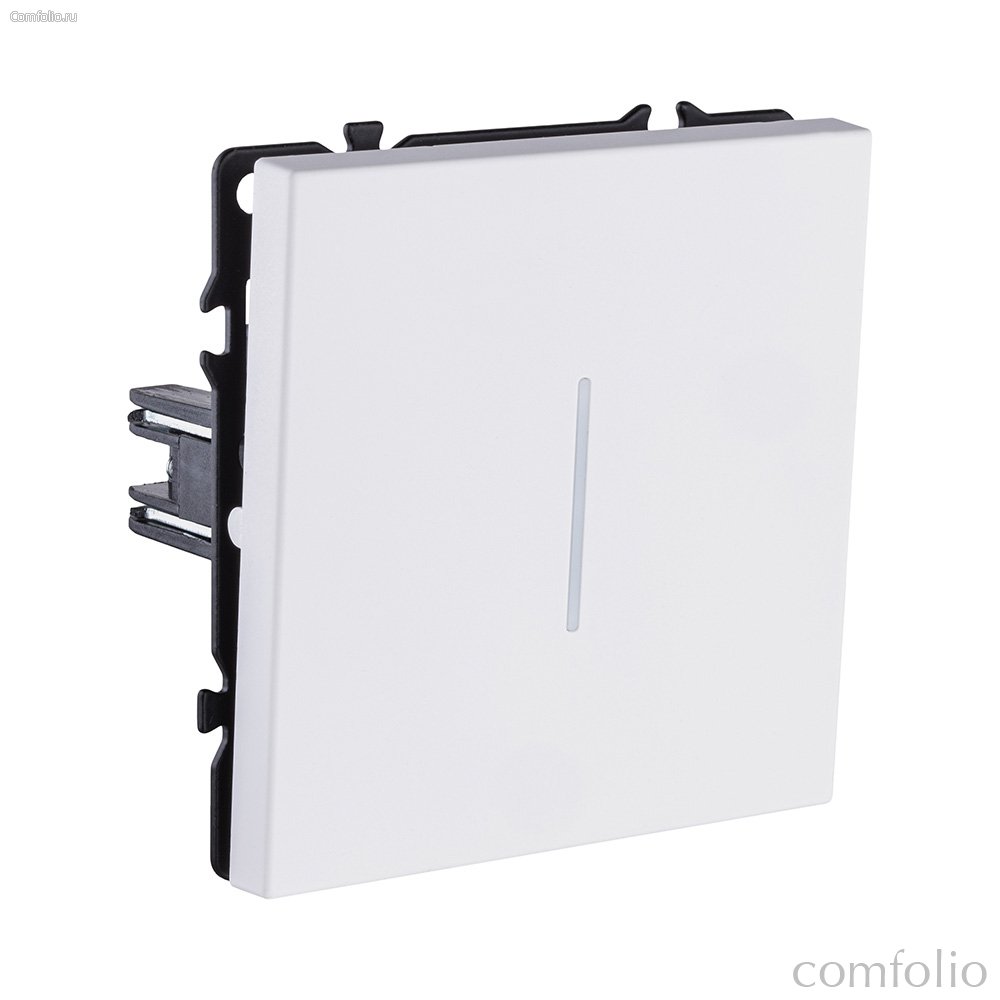 Выключатель кнопочный 1-клавишный 10А/250В с LED подсветкой, белый матовый Kollinger Eclipse EC-012WH - Kollinger
