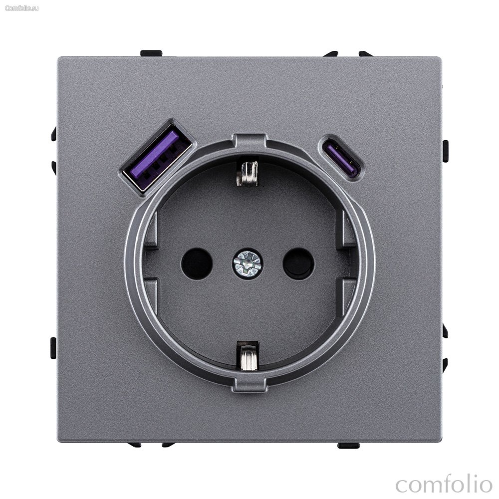 Розетка штепсельная SCHUKO 16A/250 В с USB A+C 20W, серый Kollinger Eclipse EC-016GY - Kollinger
