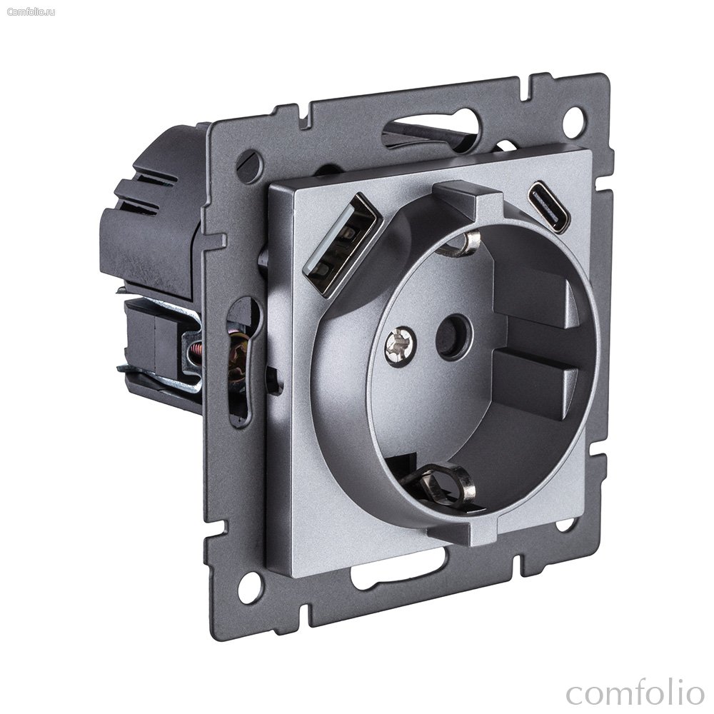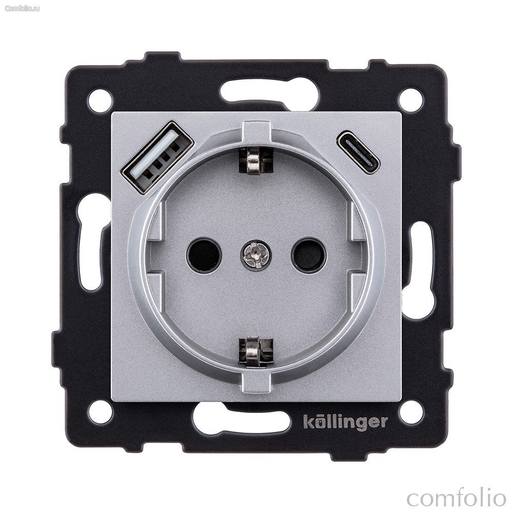 Розетка штепсельная SCHUKO 16A/250 В с USB A+C 20W, серый Kollinger REA-004GY для Aspekt, Eleganz, Reflex - Kollinger