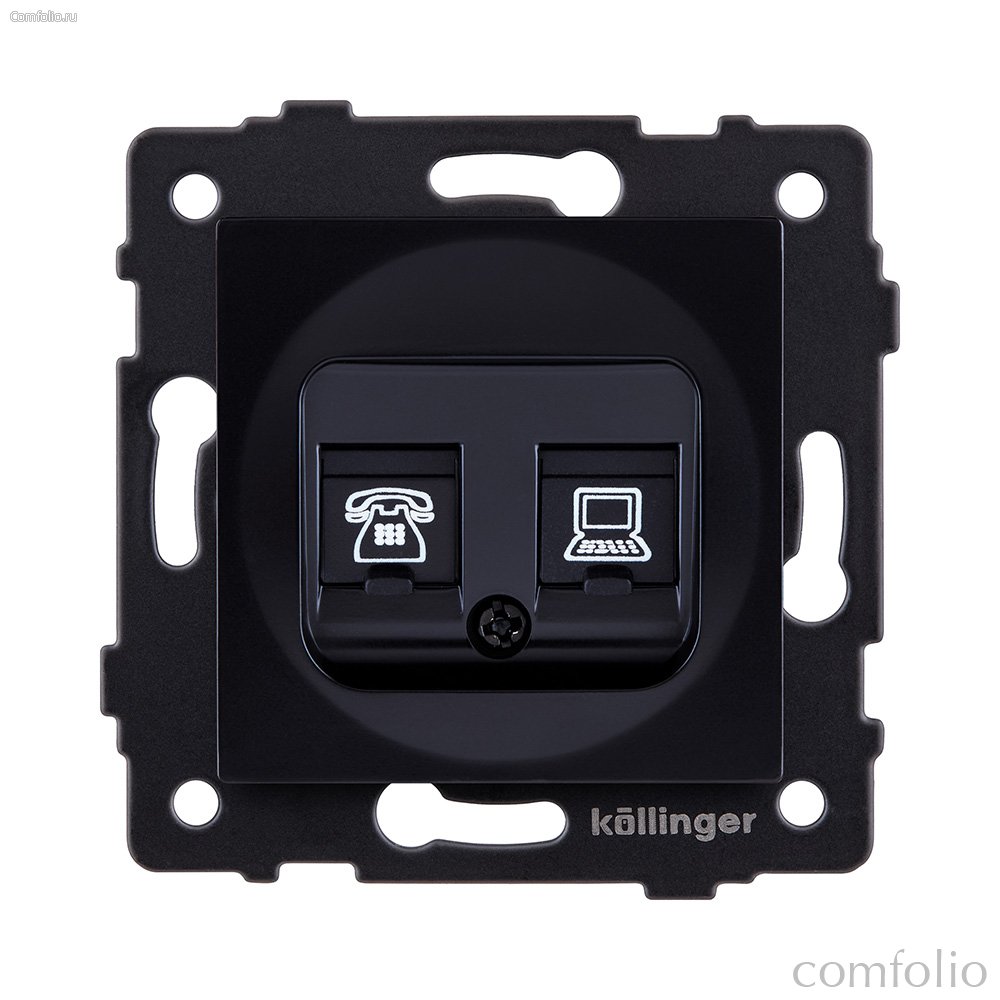 Розетка двойная RJ11 + RJ45 Cat.6, черный Kollinger REA-011BK для Aspekt, Eleganz, Reflex - Kollinger