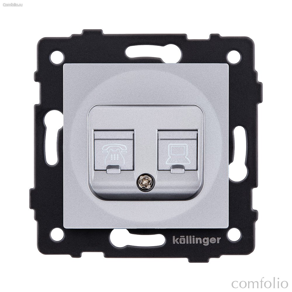 Розетка двойная RJ11 + RJ45 Cat.6, серый Kollinger REA-011GY для Aspekt, Eleganz, Reflex - Kollinger
