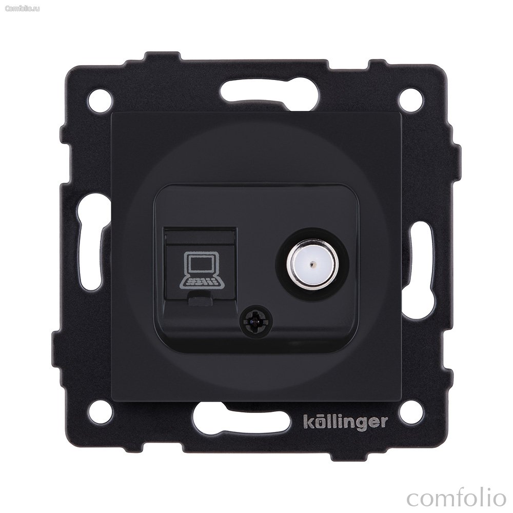 Розетка двойная спутниковая SAT + RJ45 Cat.6, черный матовый Kollinger REA-014BM для Aspekt, Eleganz, Reflex - Kollinger