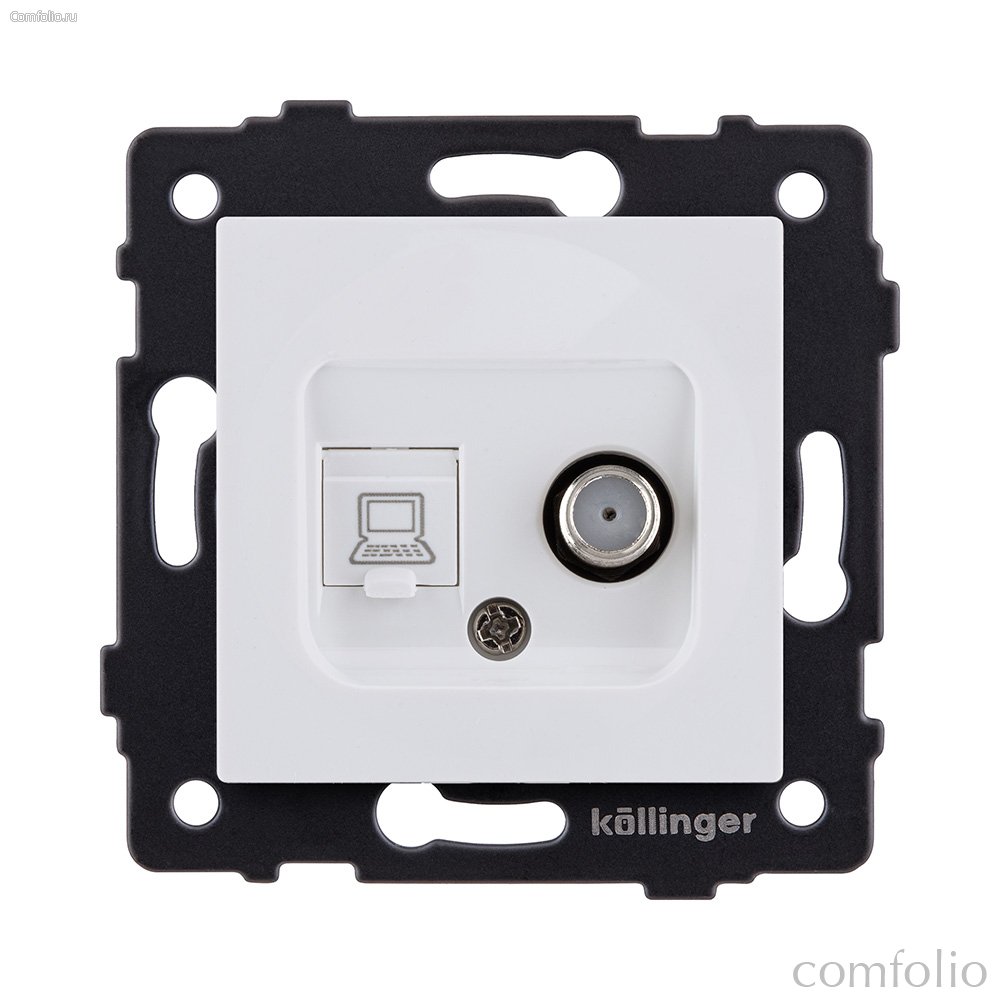 Розетка двойная спутниковая SAT + RJ45 Cat.6, белый матовый Kollinger REA-014WM для Aspekt, Eleganz, Reflex - Kollinger