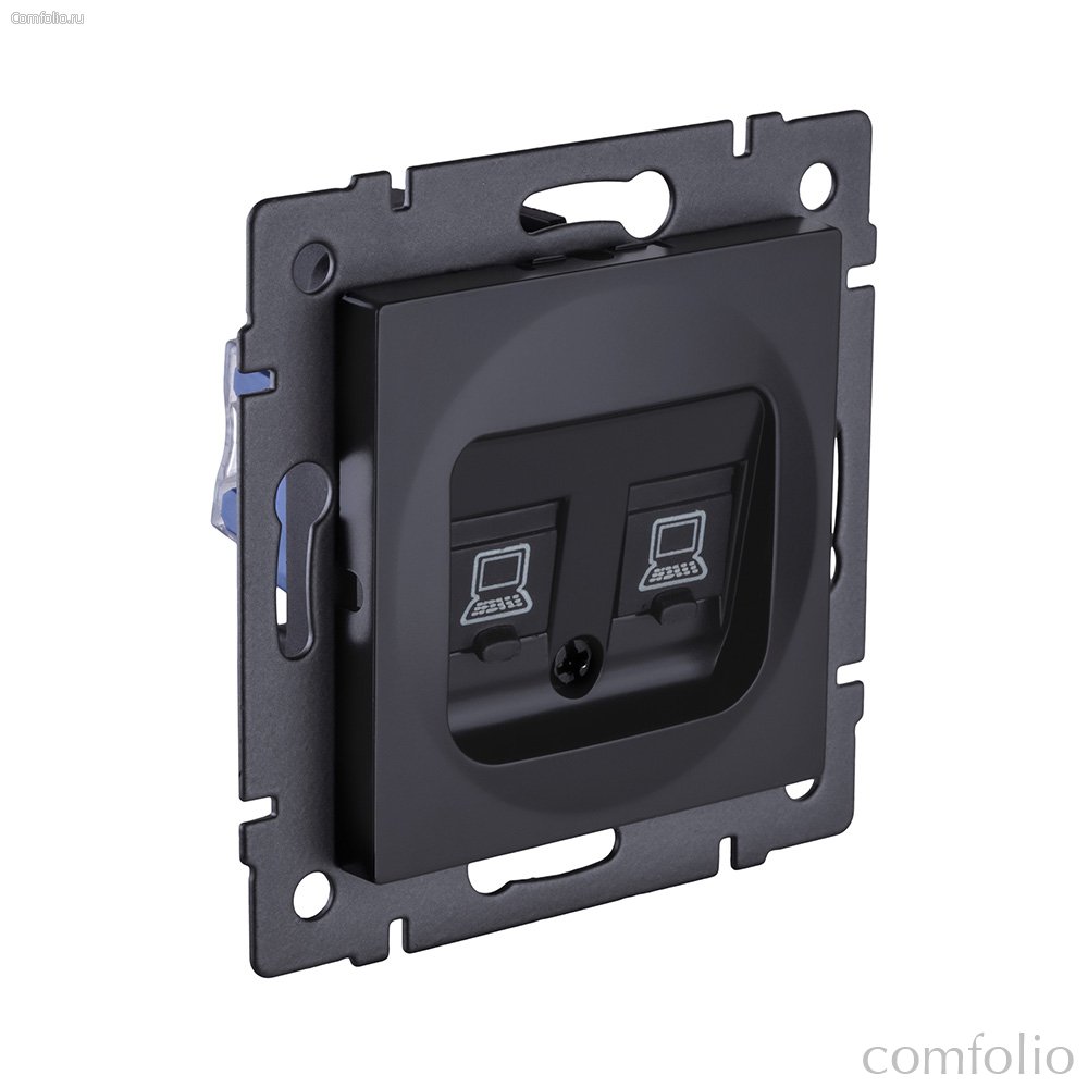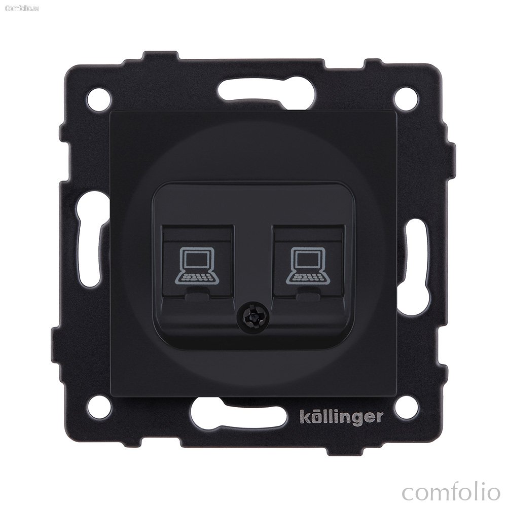 Розетка двойная Ethernet RJ45 Cat.6, черный матовый Kollinger REA-019BM для Aspekt, Eleganz, Reflex - Kollinger