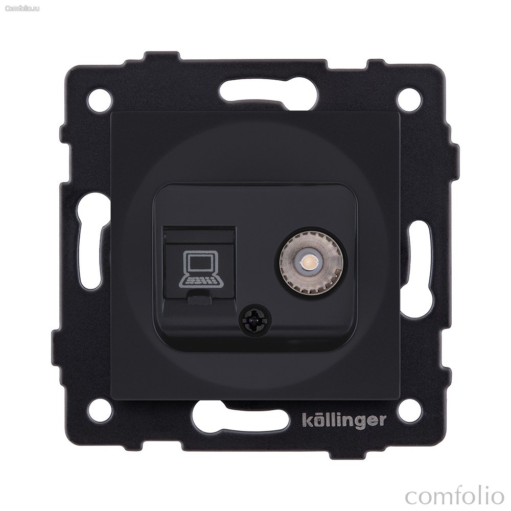 Розетка двойная TV (мама) + RJ45 Cat.6, черный матовый Kollinger REA-021BM для Aspekt, Eleganz, Reflex - Kollinger
