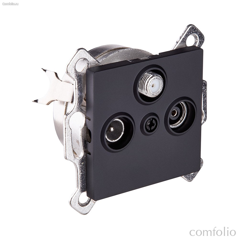Розетка тройная TV (мама) + TV (папа) + спутниковая SAT, черный матовый Kollinger REA-036BM для Aspekt, Eleganz, Reflex - Kollinger