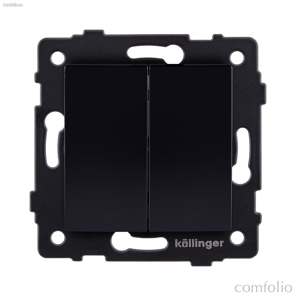 Выключатель 2-клавишный проходной 10А/250В, изогнутый, черный Kollinger REA-R-009BK для Aspekt, Eleganz, Reflex - Kollinger