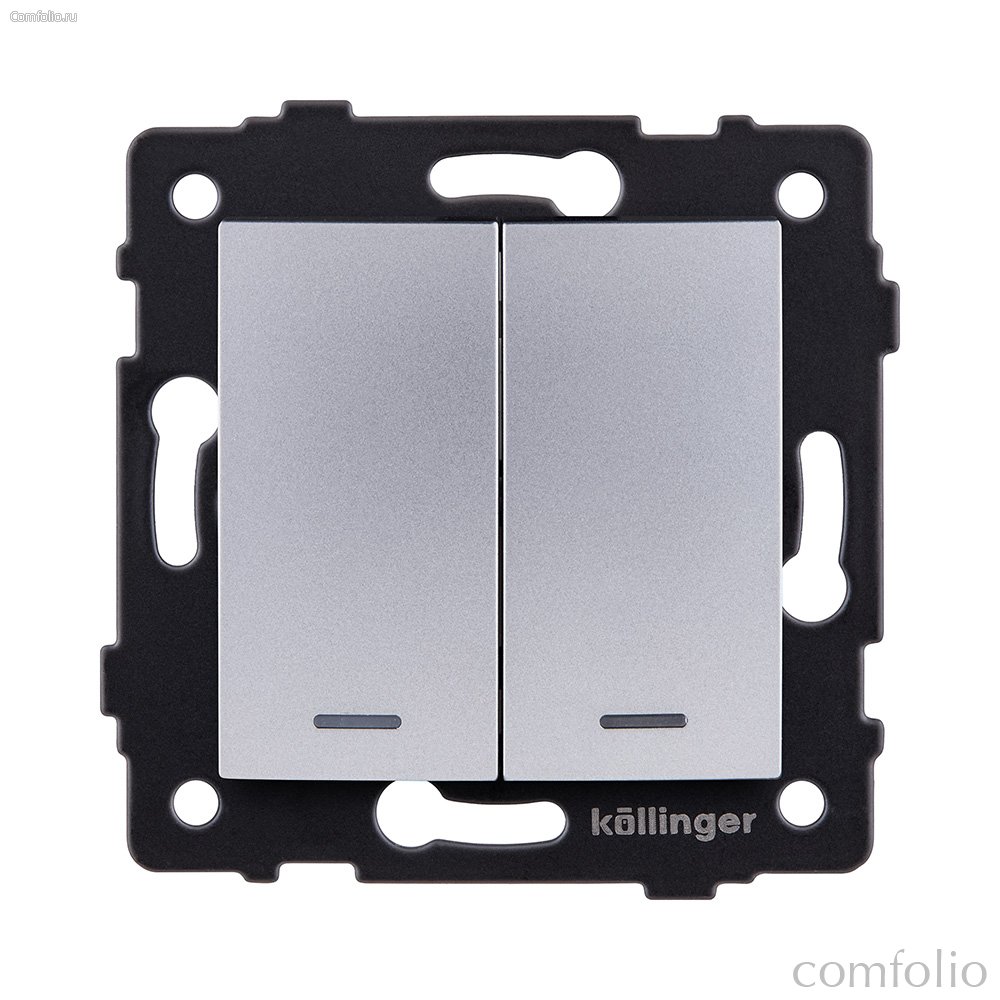Выключатель 2-клавишный проходной 10А/250В с LED подсветкой, изогнутый, серый Kollinger REA-R-010GY для Aspekt, Eleganz, Reflex - Kollinger