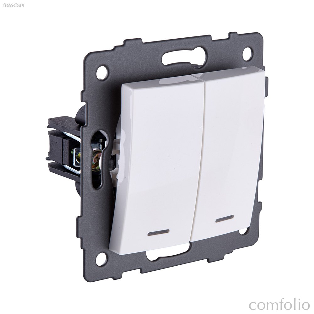 Выключатель 2-клавишный проходной 10А/250В с LED подсветкой, изогнутый, белый Kollinger REA-R-010WH для Aspekt, Eleganz, Reflex - Kollinger
