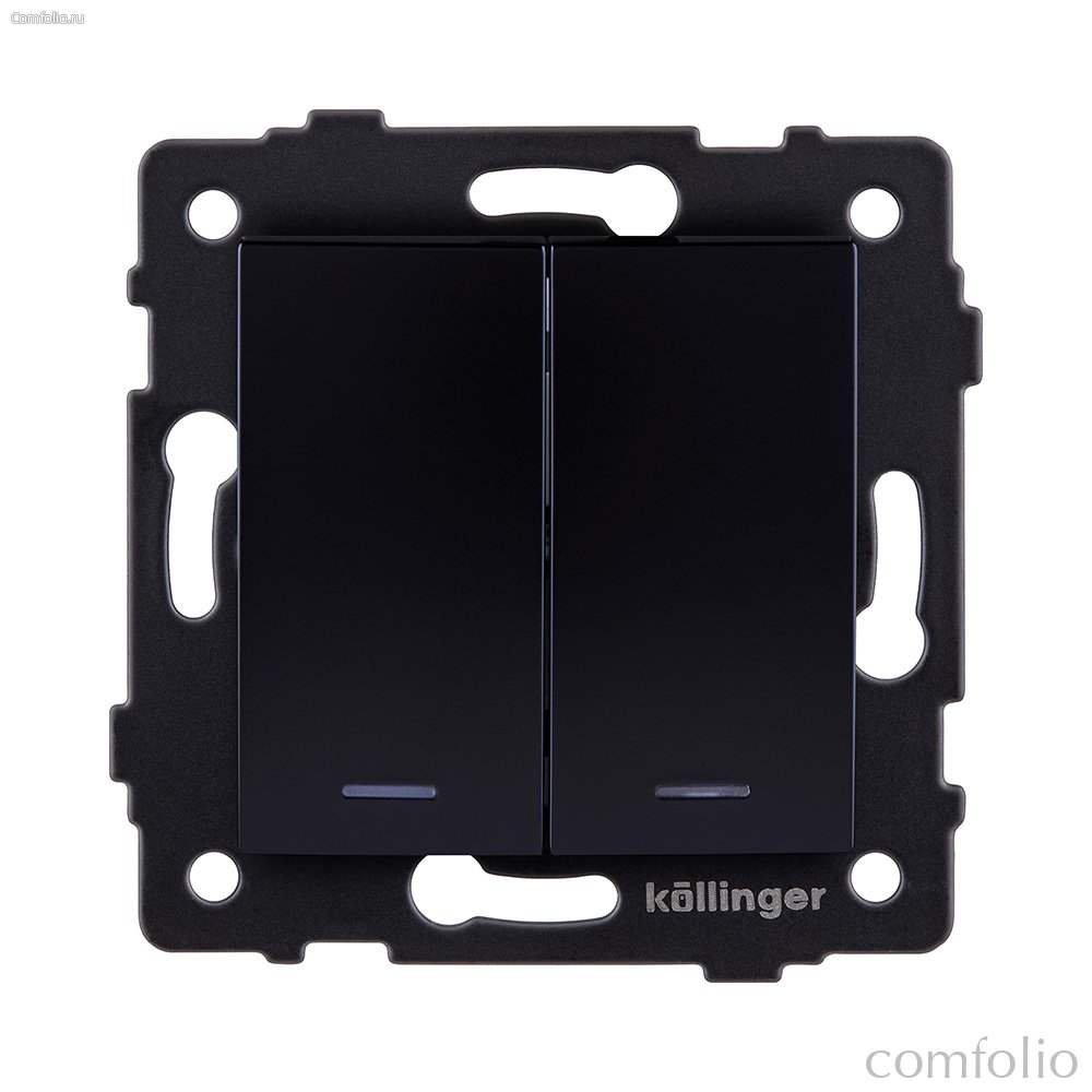 Выключатель кнопочный 2-клавишный 10А/250В с LED подсветкой, изогнутый, черный Kollinger REA-R-014BK для Aspekt, Eleganz, Reflex - Kollinger
