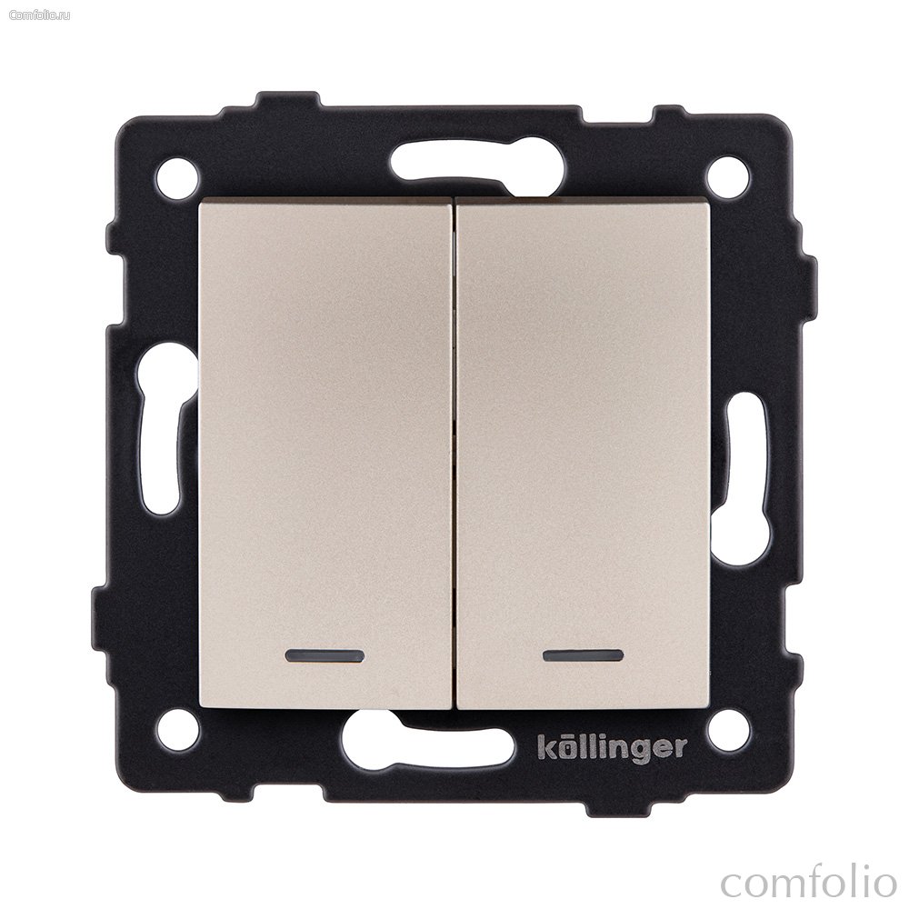 Выключатель кнопочный 2-клавишный 10А/250В с LED подсветкой, изогнутый, золотой Kollinger REA-R-014GD для Aspekt, Eleganz, Reflex - Kollinger