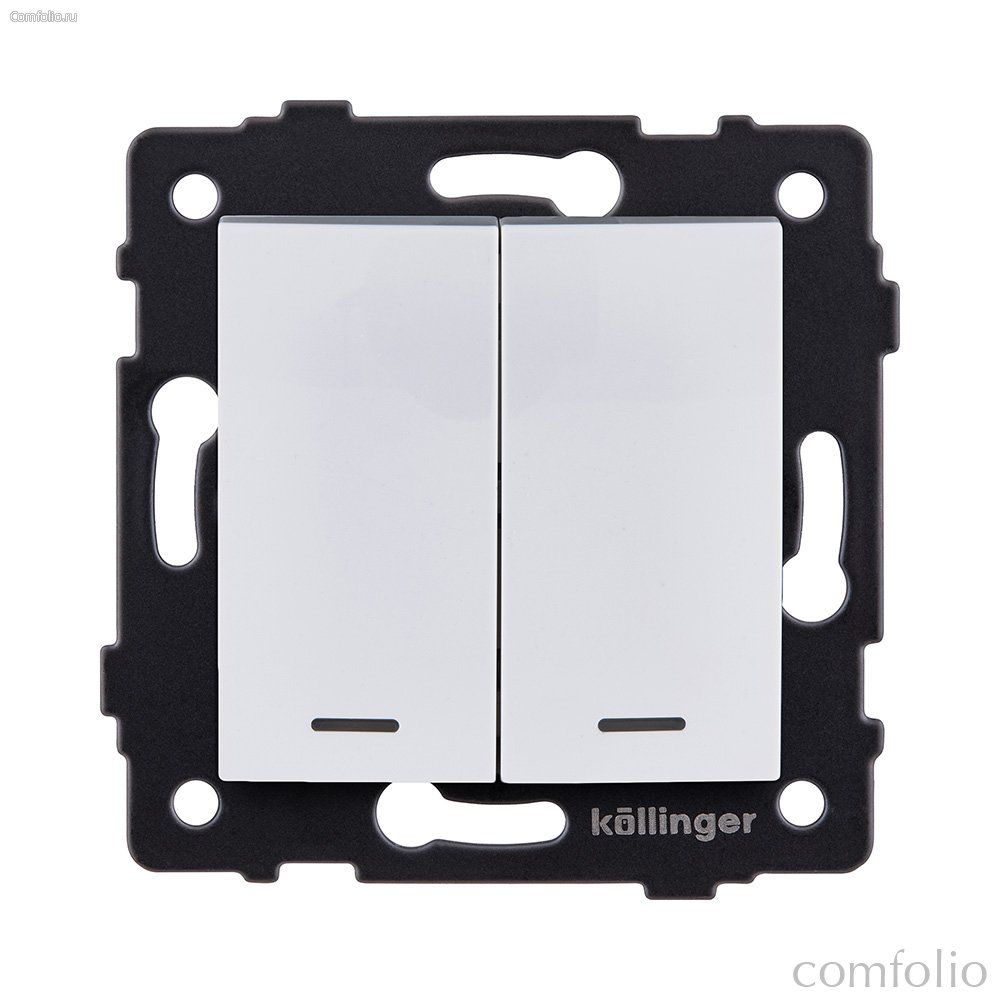Выключатель кнопочный 2-клавишный 10А/250В с LED подсветкой, изогнутый, белый Kollinger REA-R-014WH для Aspekt, Eleganz, Reflex - Kollinger