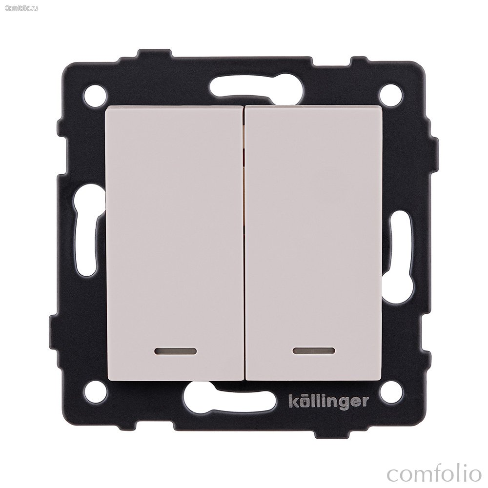 Выключатель 2-клавишный 10А/250В с LED подсветкой, кашемир матовый Kollinger REA-S-008CM для Aspekt, Eleganz, Reflex - Kollinger