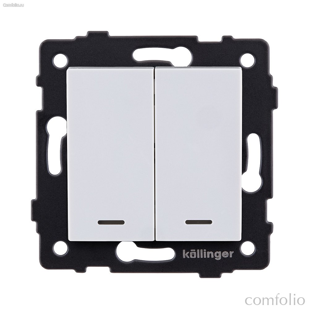 Выключатель 2-клавишный проходной 10А/250В с LED подсветкой, белый Kollinger REA-S-010WH для Aspekt, Eleganz, Reflex - Kollinger
