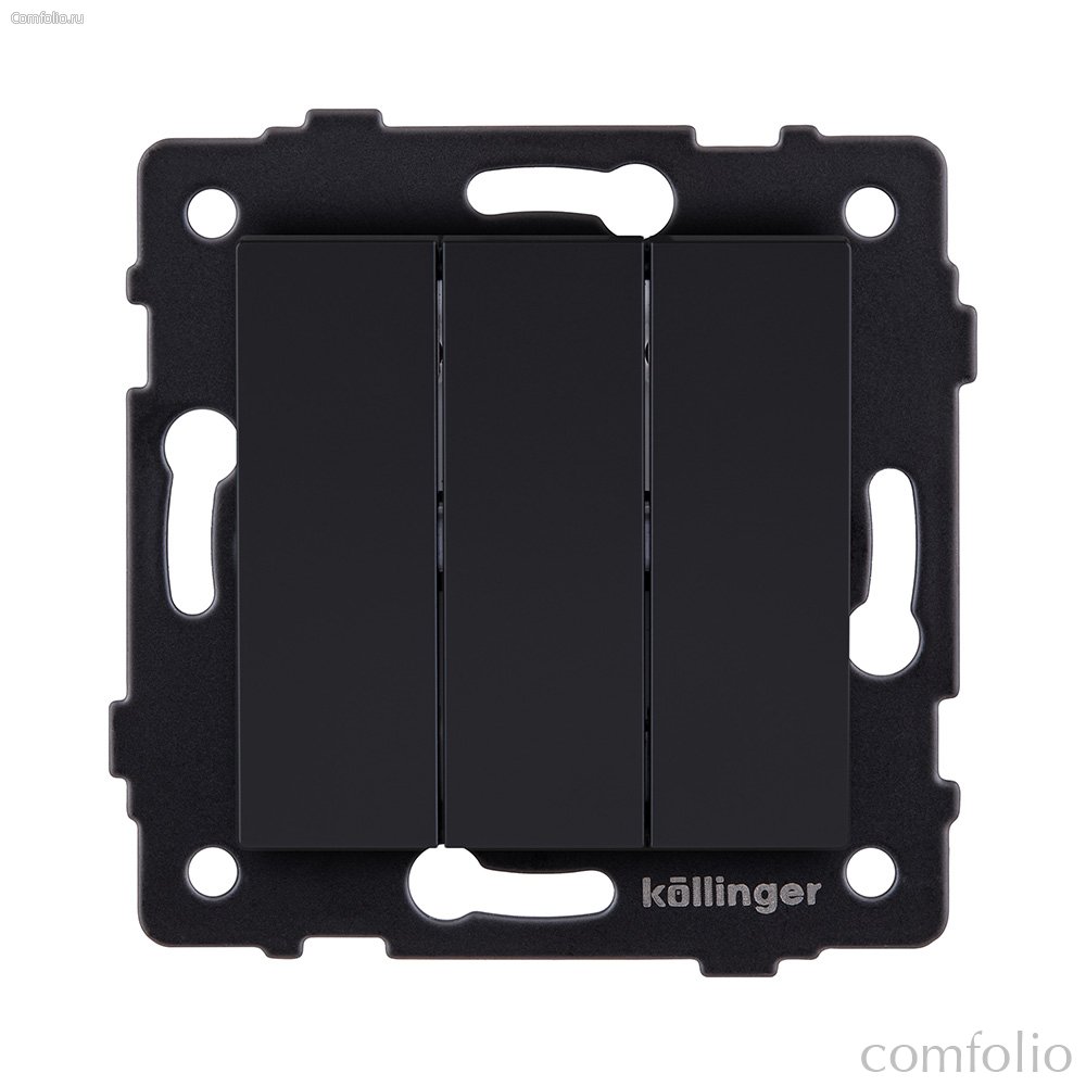 Выключатель 3-клавишный 10А/250В, черный матовый Kollinger REA-S-012BM для Aspekt, Eleganz, Reflex - Kollinger