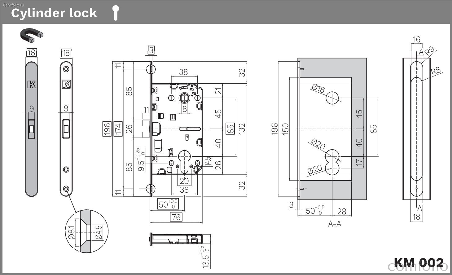 KM.002.CM.A.4.COV.CS Замок межкомнатный магнитный KOBLENZ SPINOFF Y85 с доводчиком CS матовый хром - Koblenz