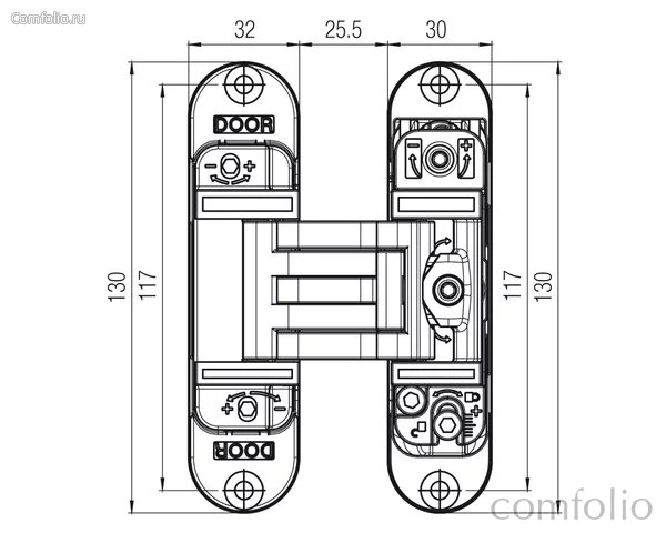 Петля скрытая универсальная асимметричная Koblenz Kubica K6300 Satin chrome 60кг, матовый хром
