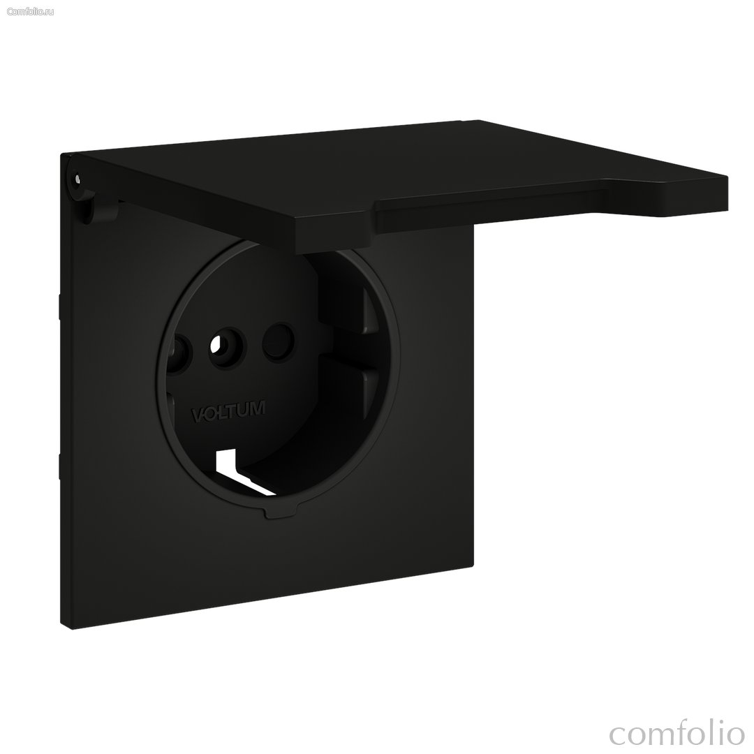 Накладка для розетки с заземлением, защитными шторками и крышкой, S70 черный матовый - Voltum