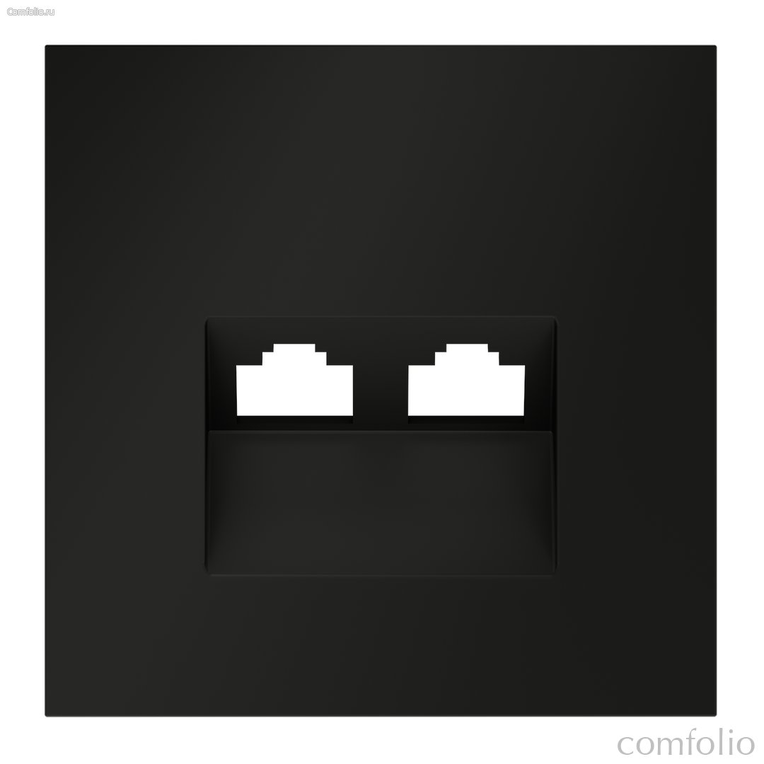 Накладка для розетки компьютерной двойной RJ45+RJ45 кат.6, S70 черный матовый - Voltum