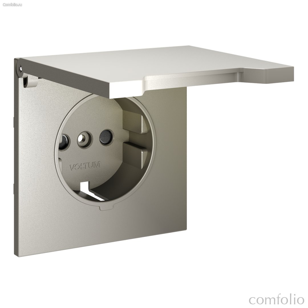 Накладка для розетки с заземлением, защитными шторками и крышкой, S70 шелк - Voltum