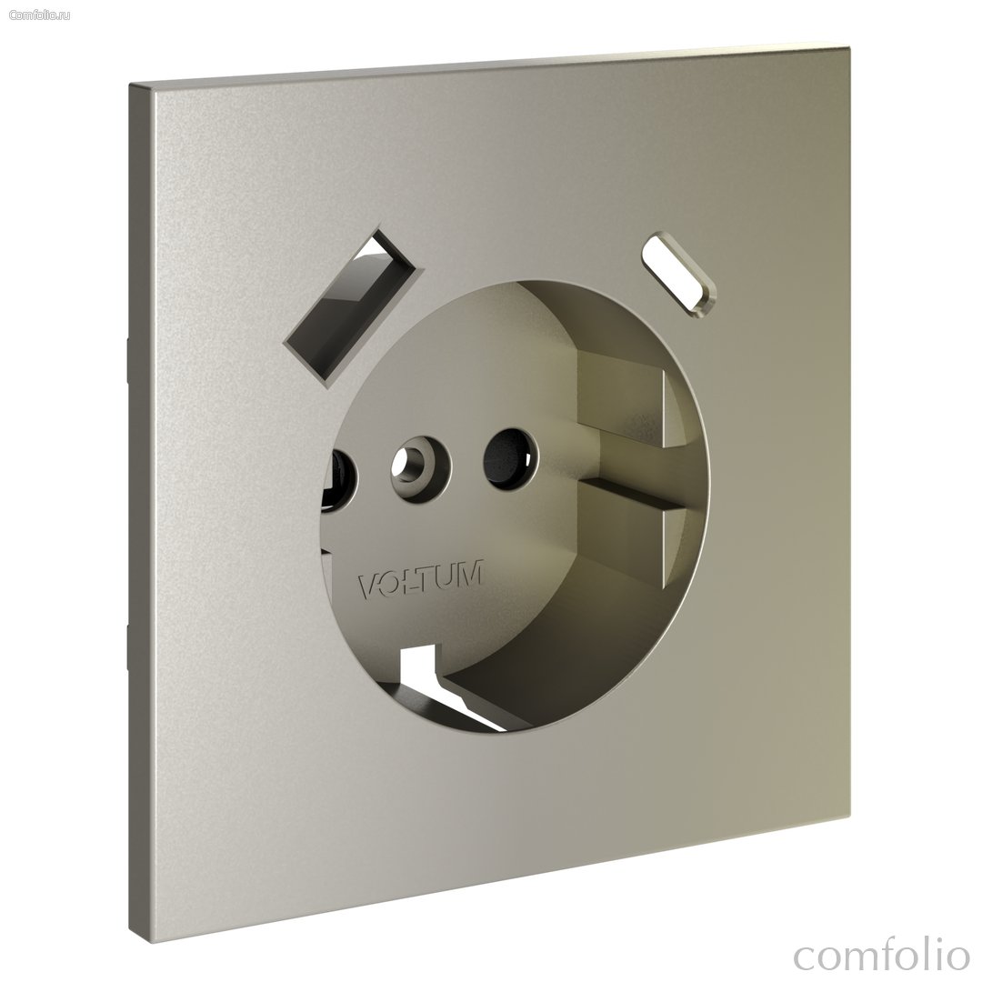 Накладка для розетки с заземлением и защитными шторками, с USB A+C, S70 шелк - Voltum