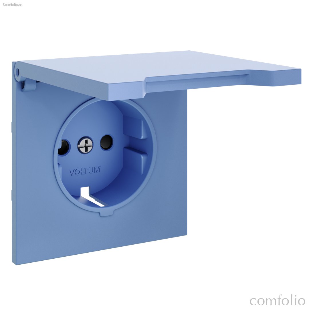 Накладка для розетки с заземлением, защитными шторками и крышкой, S70 деним - Voltum