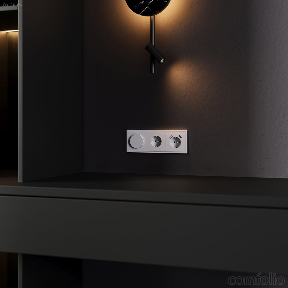 Модульная система серии S70 с раздельной поставкой механизмов, накладок и рамок позволяет монтировать электротехническую основу во время черновых работ, а выбор стилевого решения отложить до завершения дизайн-проекта. При смене интерьера вы легко обновите внешний вид, заменив только лицевые панели без вмешательства в проводку. Универсальный светло-серый цвет — совершенная ахроматическая основа для современных интерьеров. Он мягко объединяет элементы пространства, создавая сбалансированную и эстетически безупречную среду.