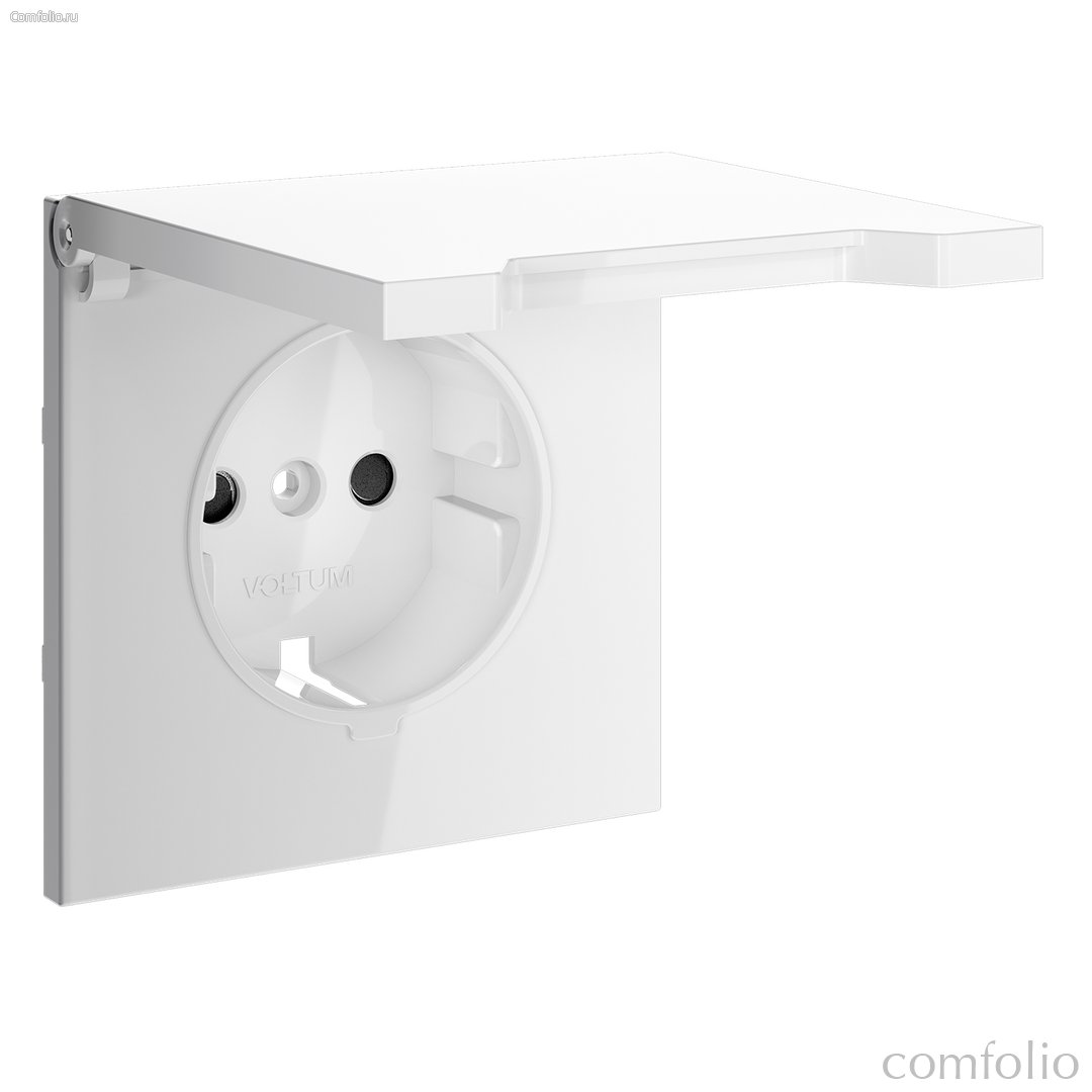 Накладка для розетки с заземлением, защитными шторками и крышкой Voltum S70 белый глянцевый