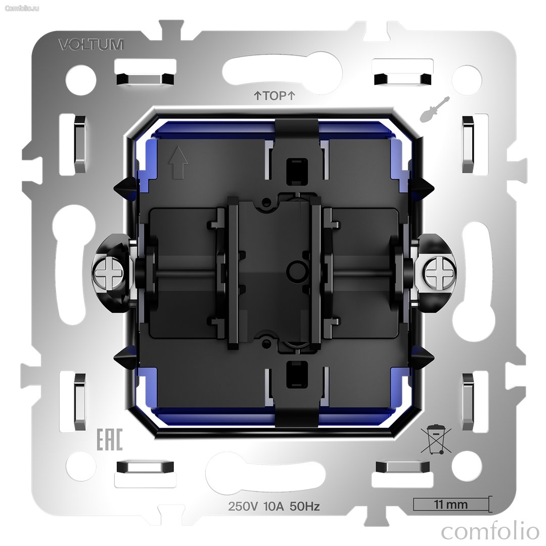 Место установки. Механизмы для классических выключатели устанавливаются в комнатах и помещениях, где требуется управление освещением из одной точки. Для жалюзи, рольставен, штор, ворот и других подобных устройств идеально подходят механизмы выключателей с функцией самовозврата. Конструктивные особенности. Механизм самозажима в выключателях позволяет надежно соединить провод с клеммой, не прибегая к помощи специальных инструментов. Инженеры Voltum разработали конструкцию, которая монтируется всего в несколько движений.