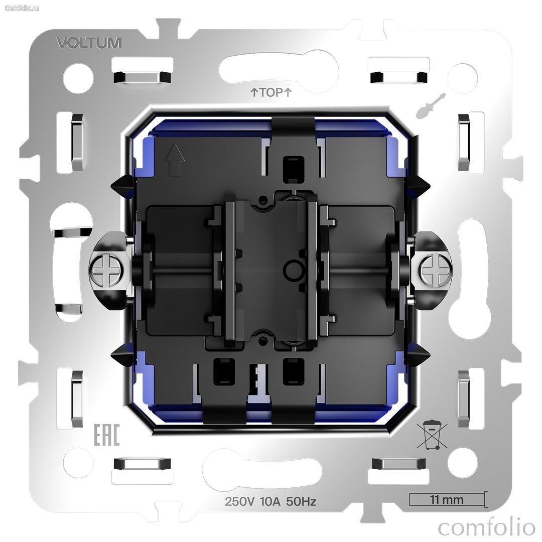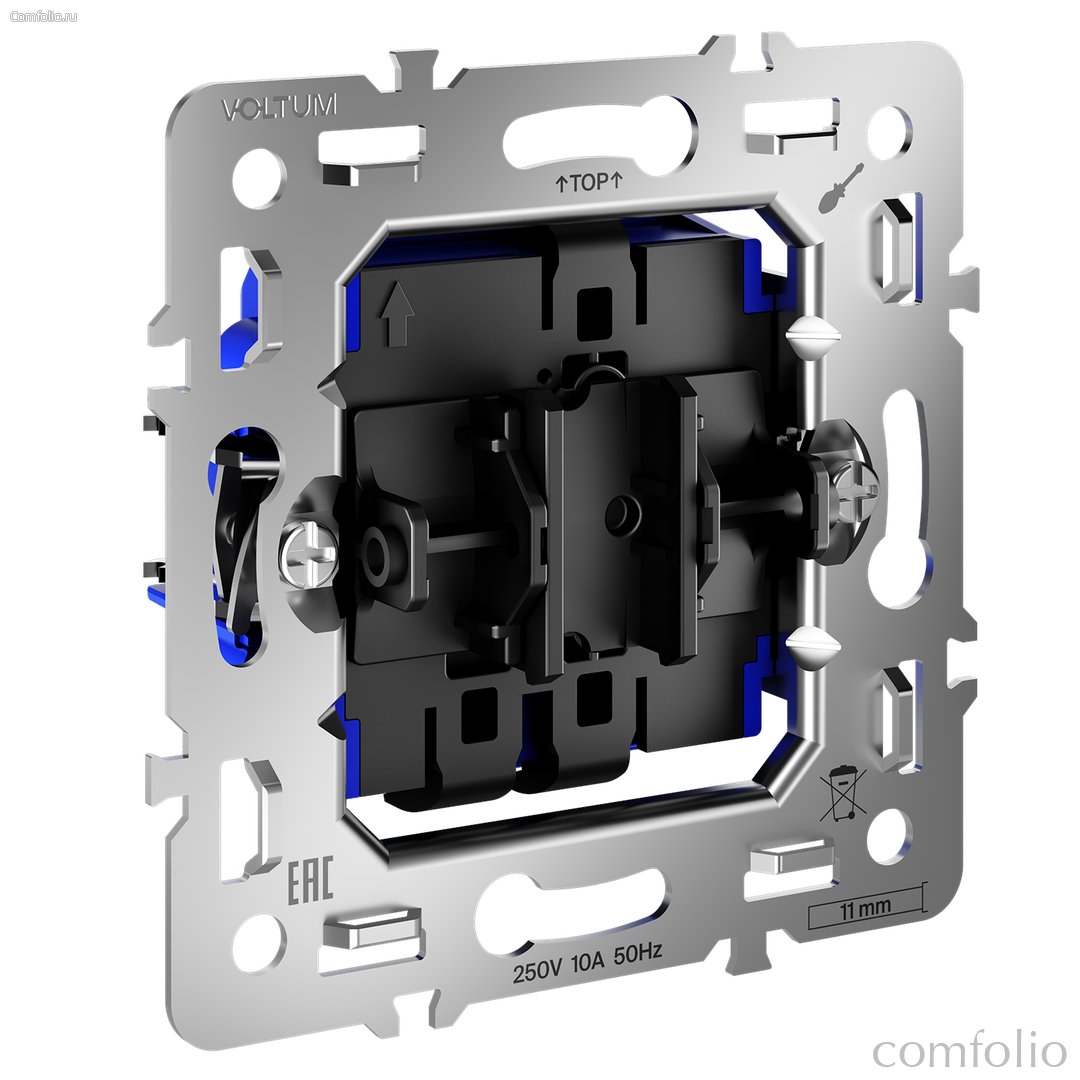 Место установки. Механизмы переключателей удобны в больших помещениях и длинных коридорах для управления освещением из нескольких мест. В ассортименте представлены два вида устройств: механизмы проходных переключателей (две точки) и механизмы перекрестных переключатей (три и более точек). Конструктивные особенности. Все механизмы переключатей Voltum способны коммутировать нагрузку до 10 А. Для эффективной работы сети требуется заранее разработать схему электроснабжения с учетом установки переключателей в нескольких точках.